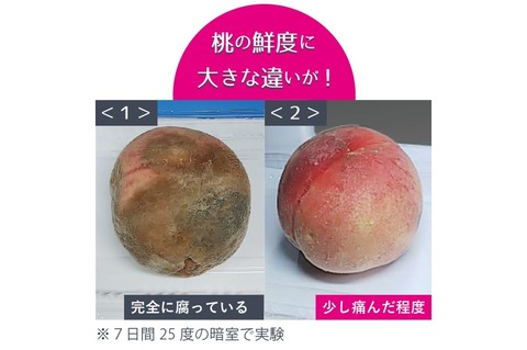 〈2〉 電磁波ブロッカーMAXminiスペシャルセット を貼った電気スタンドの光を浴びた桃は、ただの光を浴びた桃より明らかに腐りにくいという結果が出ました。